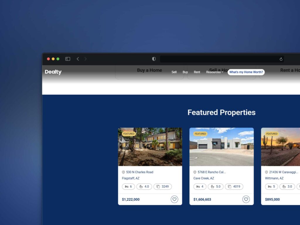 Dealty’s growing user base brought new challenges that affected usability and platform performance. First-time sellers found the listing and pricing process overwhelming, increasing platform drop-offs. Heavy traffic loads slowed key features, especially when users uploaded high-quality property data or accessed MLS records. Competing platforms like Zillow and Redfin offered broader visibility but lacked Dealty’s unique commission-free advantage—raising the need for a stronger market differentiation. The challenge was to make Dealty simpler, faster, and powerful enough to support thousands of concurrent users while maintaining a seamless property listing experience.