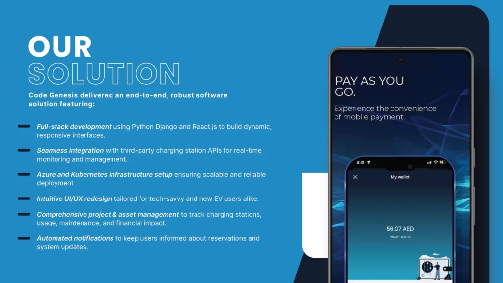 The partnership between Electrify Arabia and Code Genesis resulted in a transformative digital ecosystem that redefined how EV charging networks operate within parking facilities. By streamlining management, enhancing user engagement, and enabling real-time insights, the solution provided a solid foundation for operational excellence. The client now benefits from lower manual effort, improved system credibility, and a frictionless customer journey. Most importantly, the platform supports sustainable expansion, ensuring that Electrify Arabia remains at the forefront of innovation in the EV infrastructure space.